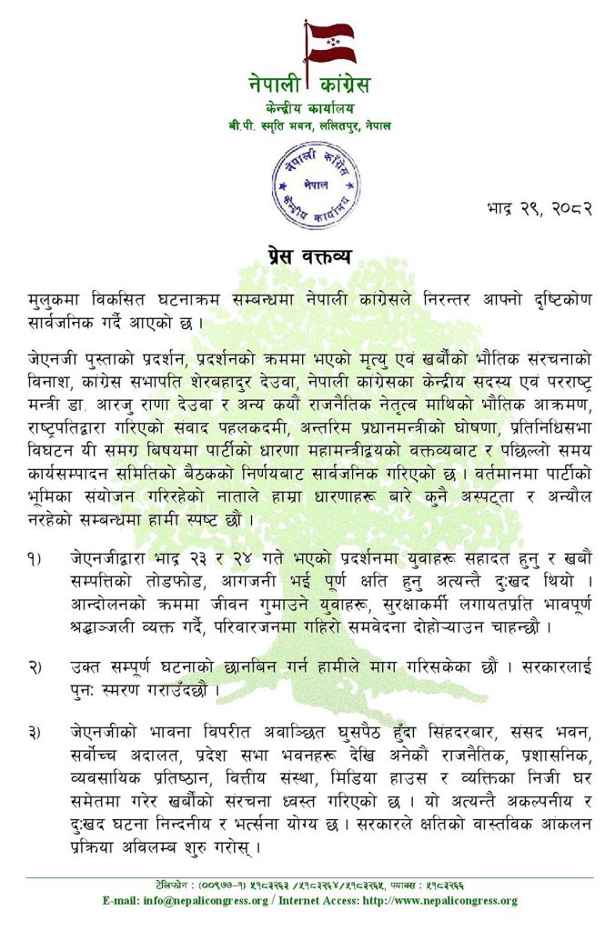 कांग्रेसले फेरि भन्योः प्रतिनिधिसभा विघटन असंवैधानिक