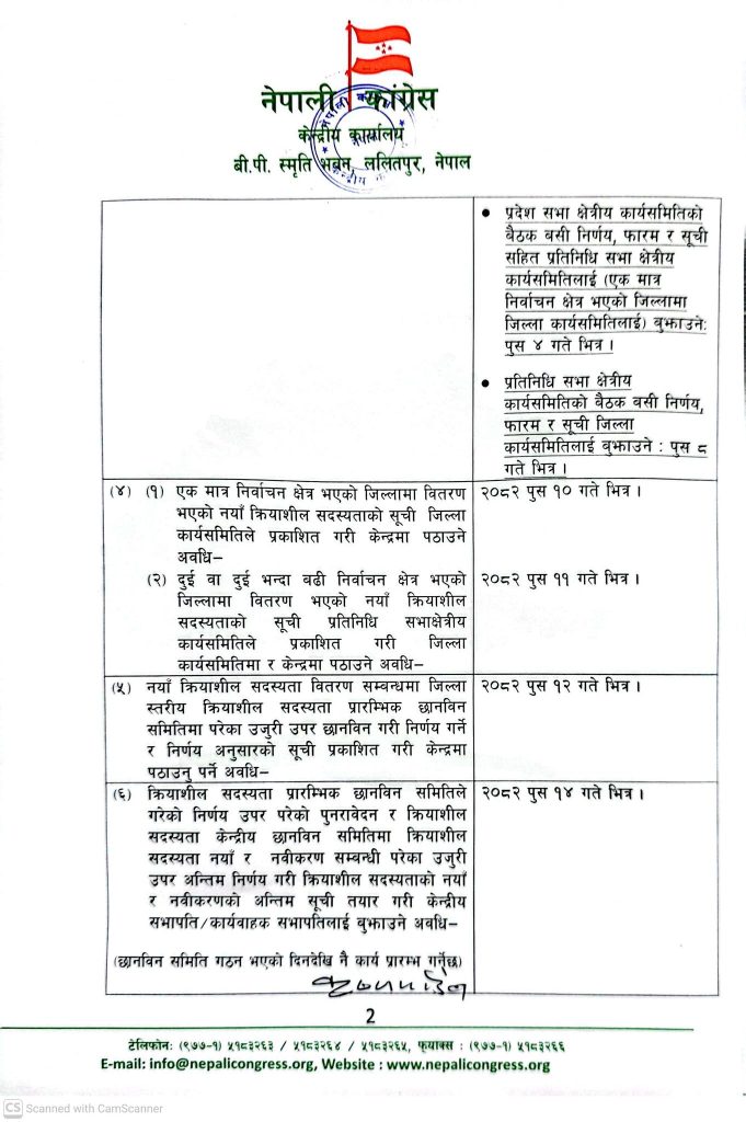 यसैबीच, १४औँ महाधिवेशनबाट निर्वाचित वर्तमान कार्यसमितिको म्याद आगामी माघ मसान्तसम्मका लागि थपिएको छ । यसअघि कार्यसमितिको कार्यकाल मंसिर मसान्तमै सकिँदै थियो । म्याद थपिएसँगै कार्यसमितिले आगामी महाधिवेशन तयारीलाई अझ प्रभावकारी रूपमा अघि बढाउन सक्ने विश्वास लिइएको छ ।