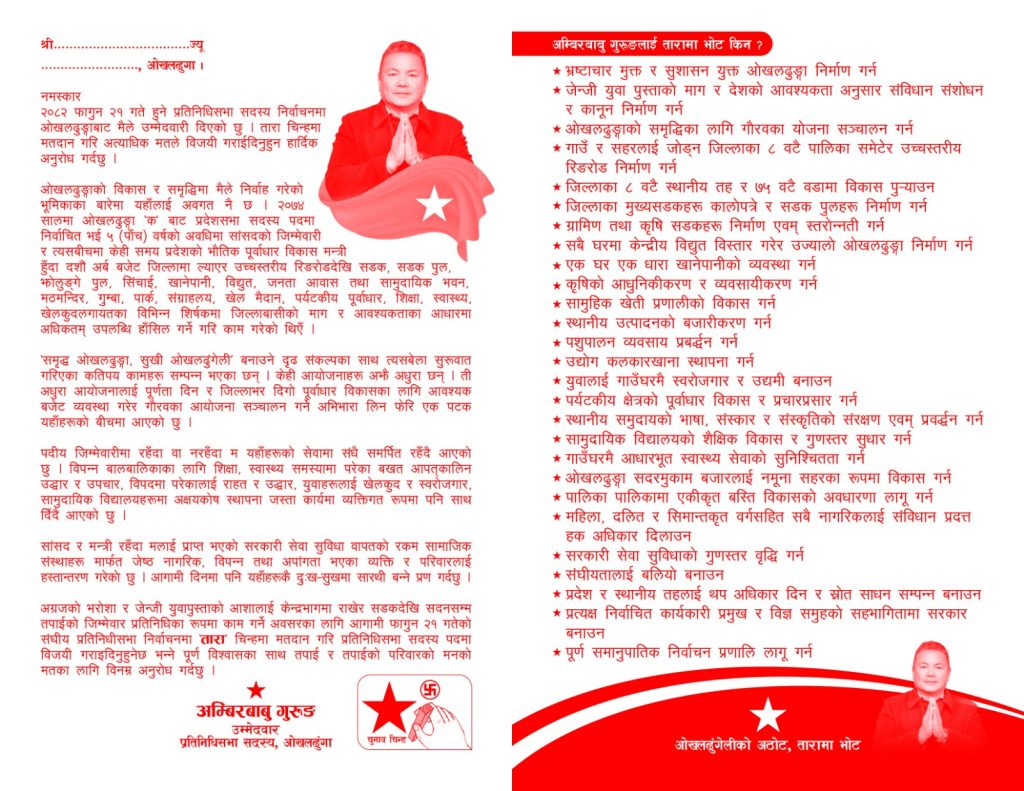 निर्वाचन हुन अब करिब तीन साता मात्र बाँकी रहेकाले यस अवधिमा राजनीतिक उतारचढाव आउन सक्ने सम्भावना भने कायम छ । तर हाल देखिएको वातावरणले ओखलढुङ्गामा नेकपाको लहर अन्य दलका लागि चुनौतीपूर्ण बनेको विश्लेषण गरिएको छ । यही माहोलले उत्साहित गुरुङ आफू निर्वाचित हुनेमा सकारात्मक देखिएका छन् भने नयाँ कानुनी व्यवस्था ल्याएर क्षेत्रीय विकासलाई गति दिने प्रतिबद्धता पनि व्यक्त गरेका छन् ।